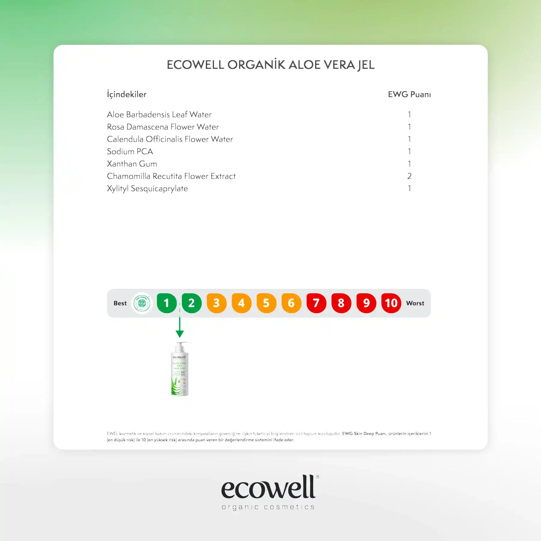 Ecowell Organik Aloe Vera Jel, hassas ve dış etkenlere maruz kalmış ciltler için yatıştırıcı bakım sunar. Organik aloe vera, gül suyu, aynısefa ve papatya özleriyle zenginleştirilmiş formülü cildi nemlendirir, ferahlık sağlar ve doğal bariyerini destekler.
